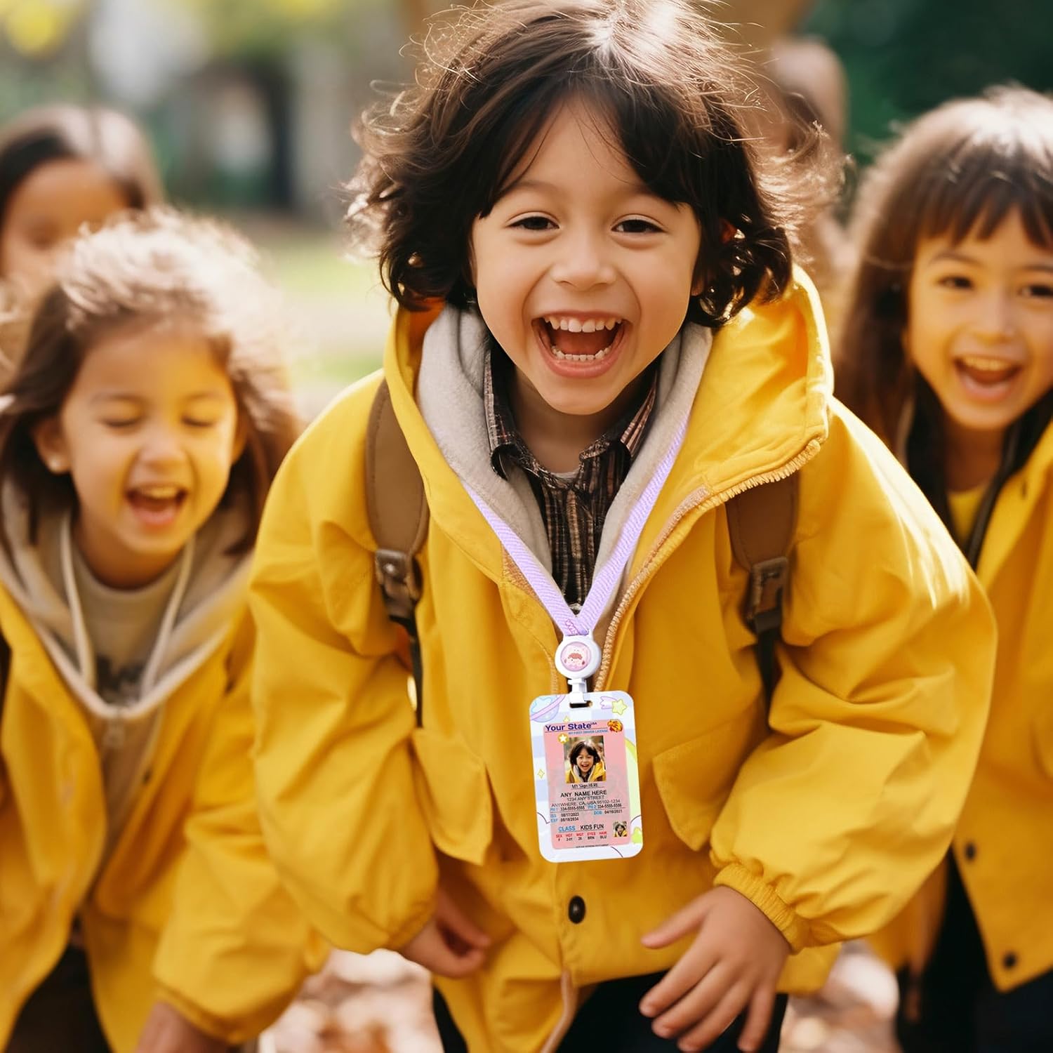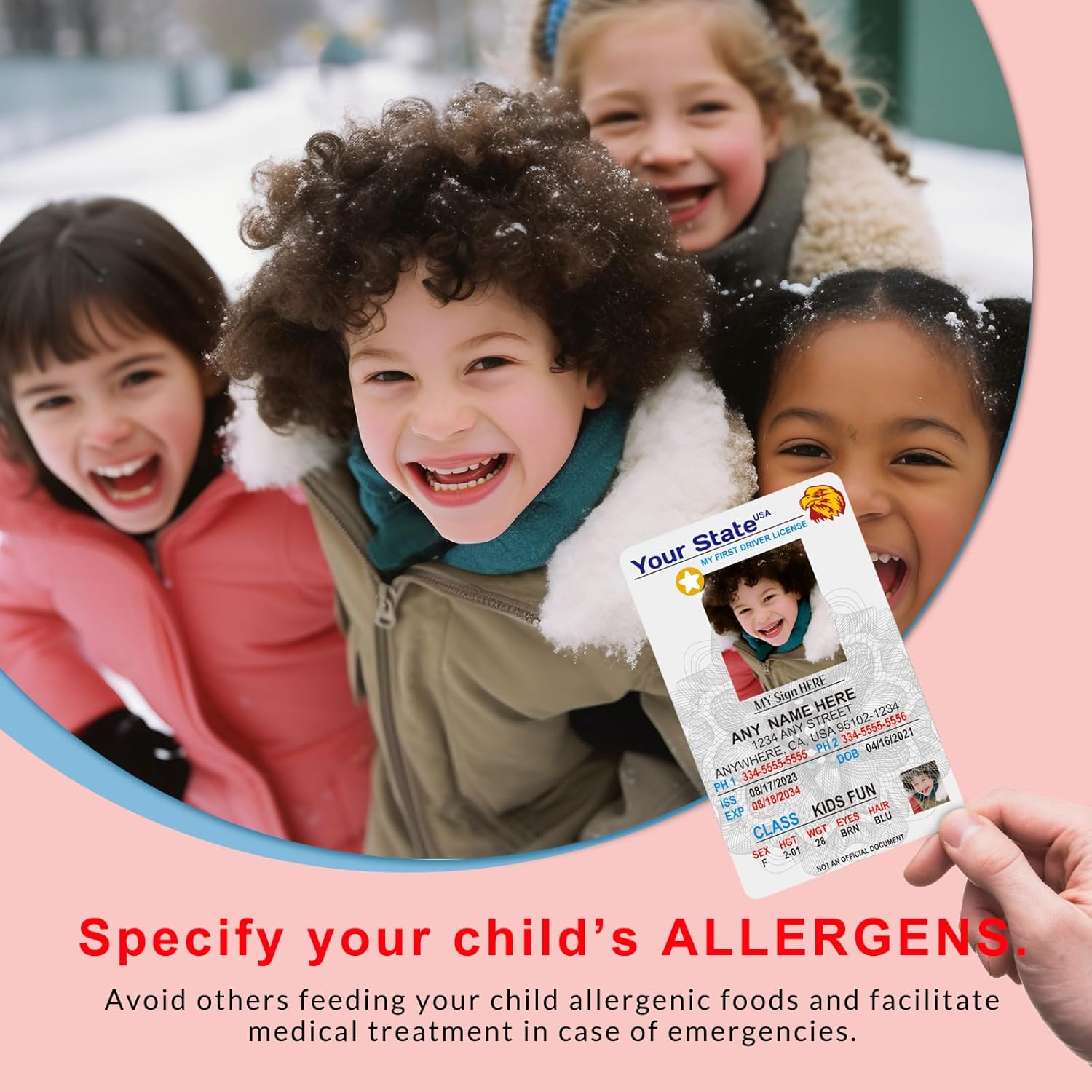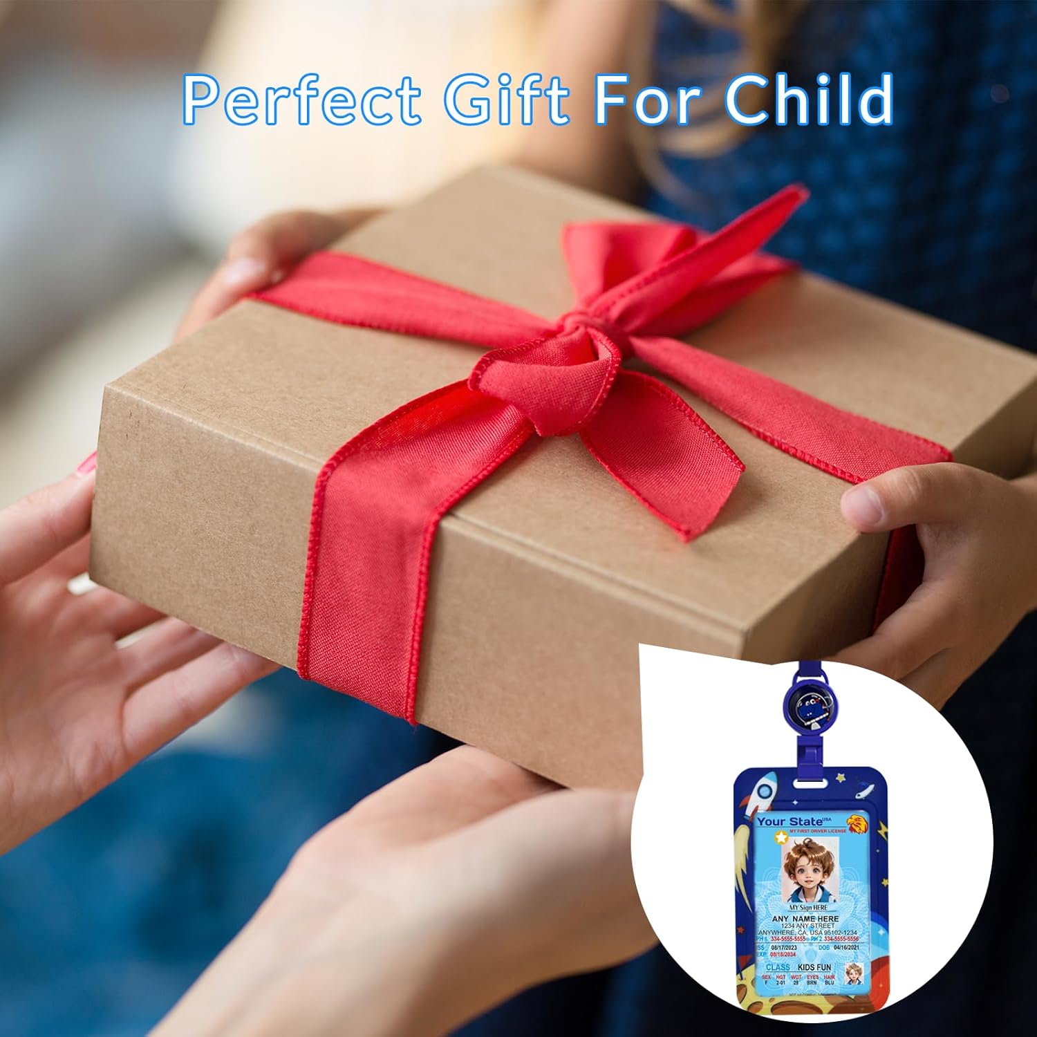 Personalized Kid Driver License: Custom Child ID Card with Holder, Printed Emergency Contact Information. Not for Official Use